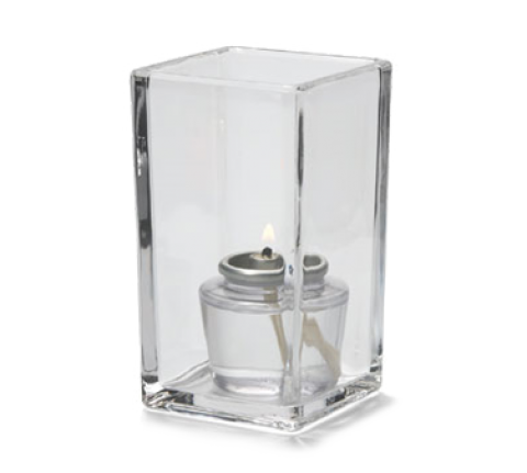 Quad™ Votive Lamp, 4-3/8"H x 2-1/2" sq., accommodates Hollowick's HD8 or HD15 fuel cell, glass, clear