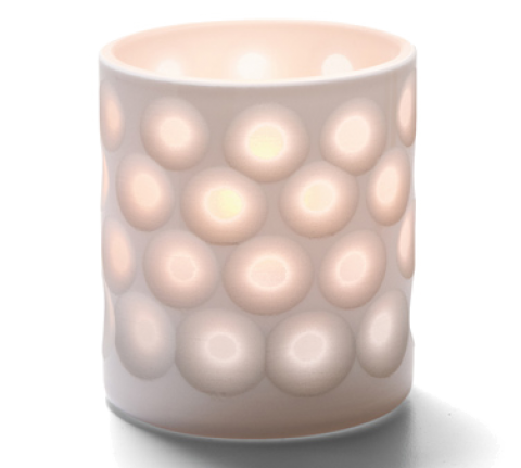 Boutique™ Votive, 3-1/8"H x 2-7/8" dia., dots, accommodates Hollowick's HD8, HD12 or HD15 fuel cell, porcelain, white