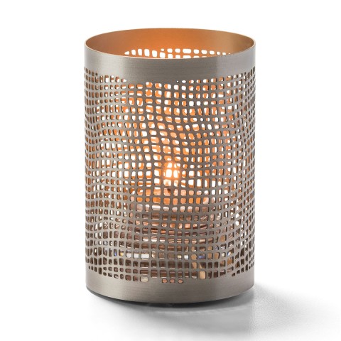 Chantilly™ Votive Lamp, 3-3/8"H x 2-3/8" dia., cylinder, perforated, metal, accommodates Hollowick's HD8, HD10 or HD12 fuel cells, pewter & gold