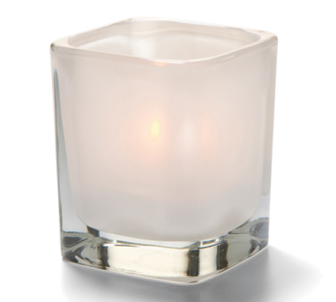 Tetra™ Votive, 3-1/2"H x 3" sq., accommodates Hollowick's HD8, HD12 or HD15 fuel cell, glass, satin linen