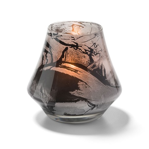 Chime™ Votive Lamp, 3-1/2"H x 2-3/4" dia, bell form, glass, accommodates Hollowick's HD8 or HD15 fuel cell, black/white marble