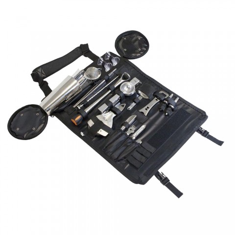 Uber Bar Tools™ Cocktail Essentials ProBostonRoll™ Deluxe Bartenders Bag, 17-1/2 x 7, includes: (16) assorted bar tools, PVC, black