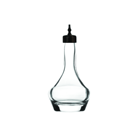 Legend Glassware - Threaded Heavy Sham Bitters Bottle, 3 oz., 2.75" dia. x 5.75"H, black top, premium glass (6 each per case)