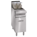 Spec Series Heavy Duty Range Match Fryer, gas, floor model, 25 lb. capacity each, dual tank, tube fired cast iron burners, millivolt temperature controls, includes: wire mesh crumb screen & (2) nickel-plated baskets, stainless steel front, door, sides, basket hanger & frypot, 6" legs, 140,000 BTU, 41kW, CSA Flame, CSA Star, NSF