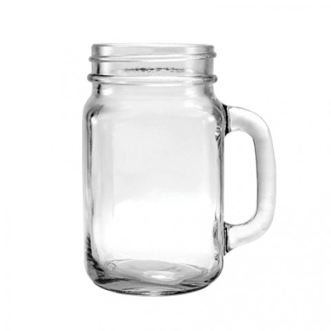 Mason Jar Shot, 4 oz., with handle, glass, clear (H 3-1/2"; T 1-3/4"; D 3-1/2"; B 2")