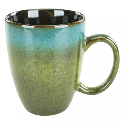Endeavor Cup, 15 oz., 3-5/8" dia. x 4-1/2"H, round, with handle, reactive glaze, ceramic, blue/green, Sioux Falls™