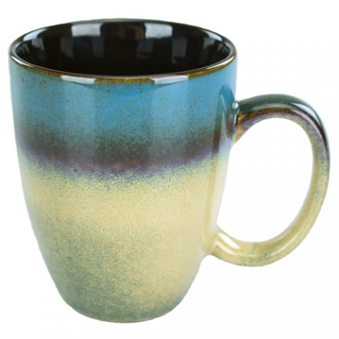 Endeavor Cup, 15 oz., 3-5/8" dia. x 4-1/2"H, round, with handle, reactive glaze, ceramic, blue/tan, Sioux Falls™