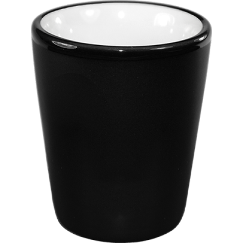 Shot Cup, 1-1/2 oz., 2" dia. x 2-1/4"H, round, without handle, fully vitrified, microwave & dishwasher safe, lead free, fully vitrified, stoneware, black matte exterior, white interior, Hilo®