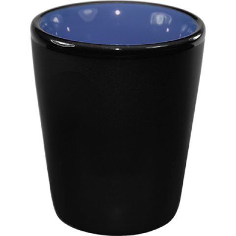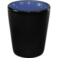 Shot Cup, 1-1/2 oz., 2" dia. x 2-1/4"H, round, without handle, fully vitrified, microwave & dishwasher safe, lead free, fully vitrified, stoneware, black matte exterior, country blue interior, Hilo®