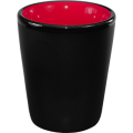 Shot Cup, 1-1/2 oz., 2" dia. x 2-1/4"H, round, without handle, fully vitrified, microwave & dishwasher safe, lead free, fully vitrified, stoneware, black matte exterior, red interior, Hilo®