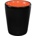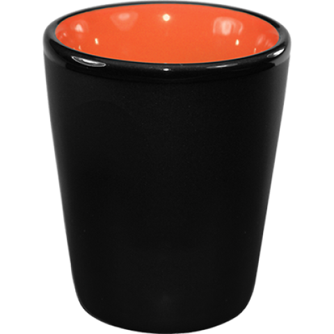 Shot Cup, 1-1/2 oz., 2" dia. x 2-1/4"H, round, without handle, fully vitrified, microwave & dishwasher safe, lead free, fully vitrified, stoneware, black matte exterior, orange interior, Hilo®
