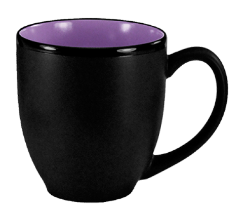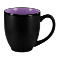 Bistro Cup, 15 oz., 3-3/4" dia. x 4-1/8"H, with handle, fully vitrified, microwave & dishwasher safe, lead free, fully vitrified, stoneware, black matte exterior, purple interior, Hilo®