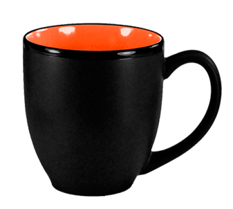 Bistro Cup, 15 oz., 3-3/4" dia. x 4-1/8"H, with handle, fully vitrified, microwave & dishwasher safe, lead free, fully vitrified, stoneware, black matte exterior, orange interior, Hilo®