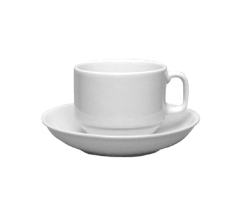 Cappuccino Cup, 6 oz., 3-1/4" dia. x 2-3/8"H, with handle, includes: 5-1/2" dia. saucer, round, microwave & dishwasher safe, lead free, ceramic, European White