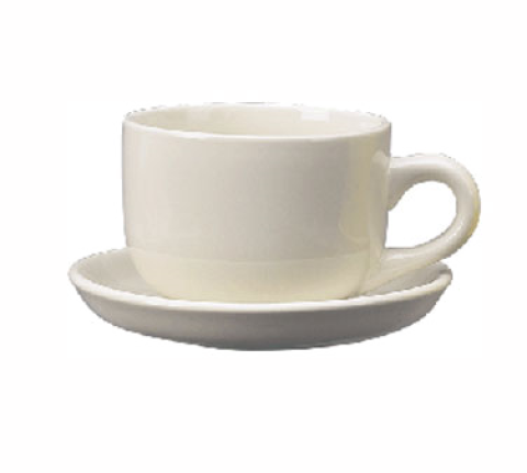 Latte Cup, 14 oz., 4-1/4" dia. x 3-1/8"H, round, with handle, fully vitrified, microwave & dishwasher safe, lead free, ceramic, American White, Cancun™ (Item shown with optional Saucer)