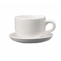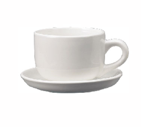 Latte Cup, 14 oz., 4-1/4" dia. x 3-1/8"H, round, with handle, fully vitrified, microwave & dishwasher safe, lead free, ceramic, European White, Cancun™ (Item shown with optional Saucer)