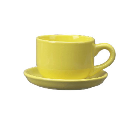 Latte Cup, 14 oz., 4-1/4" dia. x 3-1/8"H, round, with handle, fully vitrified, microwave & dishwasher safe, lead free, ceramic, yellow, Cancun™ (Item shown with optional Saucer)