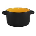 Bistro Soup Bowl, 11 oz., 4-1/8" dia. (w/handles 5-5/8" dia.) x 2-3/8"H, round, oven/microwave/dishwasher safe, lead free, fully vitrified, stoneware, black matte exterior, yellow interior, Hilo®