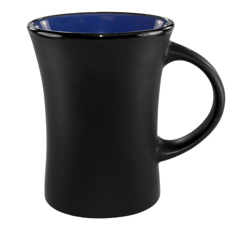 Venturi Mug, 9.5 oz., 3-1/4" dia. x 4-1/8"H, round, with handle, fully vitrified, microwave & dishwasher safe, lead free, fully vitrified, stoneware, black matte exterior, country blue interior, Hilo®
