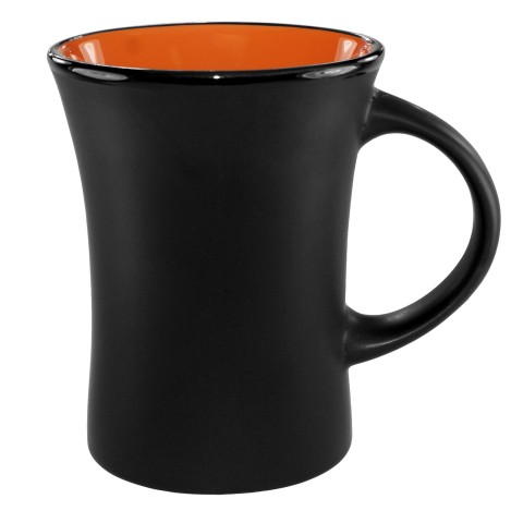 Venturi Mug, 9.5 oz., 3-1/4" dia. x 4-1/8"H, round, with handle, fully vitrified, microwave & dishwasher safe, lead free, fully vitrified, stoneware, black matte exterior, orange interior, Hilo®