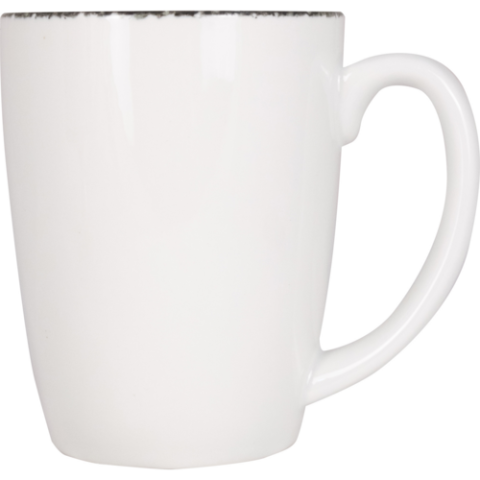 Provincial™ Mug, 3-1/4"D x 4-1/8"H, 11 oz., round, with handle, porcelain with underglaze decoration, European white with charcoal