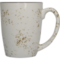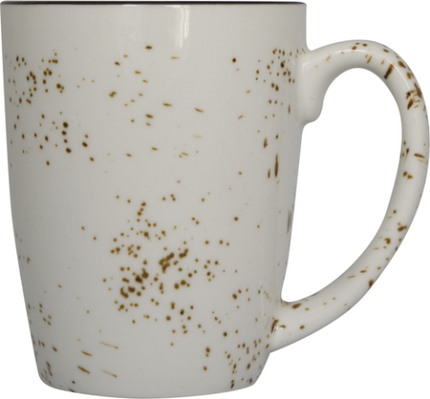Mug, 3-1/4"D x 4-1/8"H, 11 oz., Round with Handle, Stoneware Fully Vitrified with hand painted reactive glaze finish, Crème with Dark Brown Trim and Speckles, Splash™