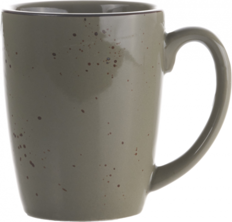 Mug, 3-1/4"D x 4-1/8"H, 11 oz., Round with Handle, Stoneware Fully Vitrified with hand painted reactive glaze finish, Green Smoke with Dark Brown Trim and Speckles, Splash™