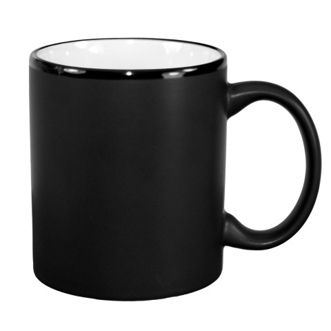 Mug, 11 oz., 3-1/4" dia. x 3-3/4"H, round, with C-handle, fully vitrified, microwave & dishwasher safe, lead free, fully vitrified, stoneware, black matte exterior, white interior, Hilo®