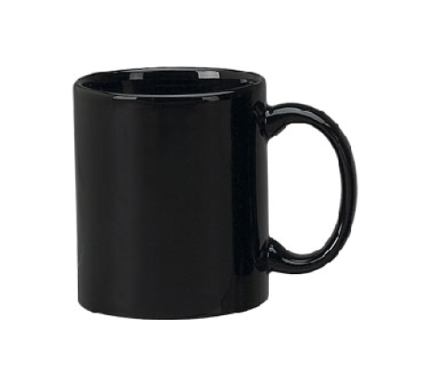 Mug, 11 oz., 3-1/4" dia. x 3-3/4"H, round, with C-handle, fully vitrified, microwave & dishwasher safe, lead free, ceramic, black, Cancun™