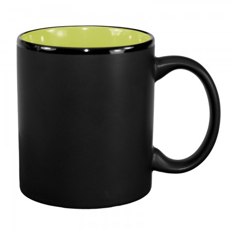 Mug, 11 oz., 3-1/4" dia. x 3-3/4"H, round, with C-handle, fully vitrified, microwave & dishwasher safe, lead free, fully vitrified, stoneware, black matte exterior, rye green interior, Hilo®