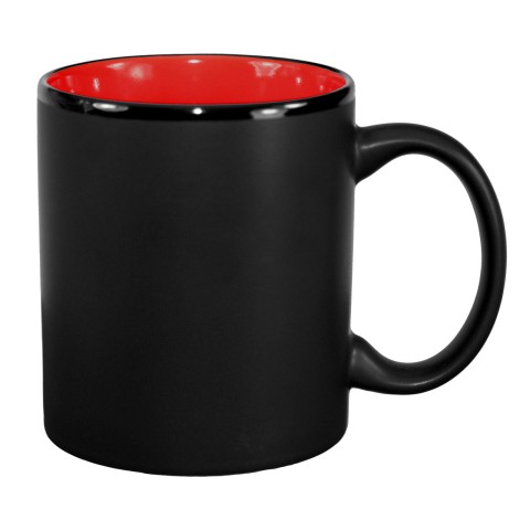 Mug, 11 oz., 3-1/4" dia. x 3-3/4"H, round, with C-handle, fully vitrified, microwave & dishwasher safe, lead free, fully vitrified, stoneware, black matte exterior, red interior, Hilo®