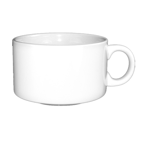 Soup Cup, 14.5 oz., 4-3/8" dia. x 2-3/4"H, round, with handle, fully vitrified, microwave & dishwasher safe, lead free, stoneware, European White, Torino™ Stak