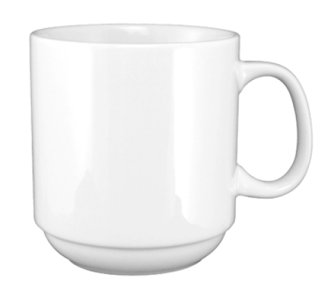 Mug, 11 oz., 3-1/4" dia. x 3-5/8"H, round, with handle, stackable, fully vitrified, microwave & dishwasher safe, lead free, porcelain, European White, Torino™ Stak