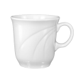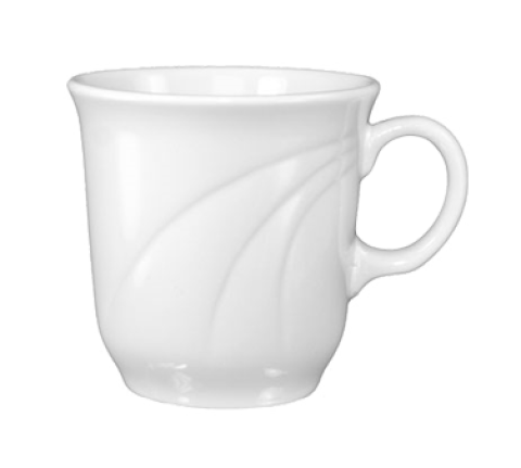Cup, tall, 6 oz., 3" dia. x 3"H, round, with handle, rolled edge, fully vitrified, microwave & dishwasher safe, lead free, embossed, porcelain, Bright White, Amsterdamâ„¢