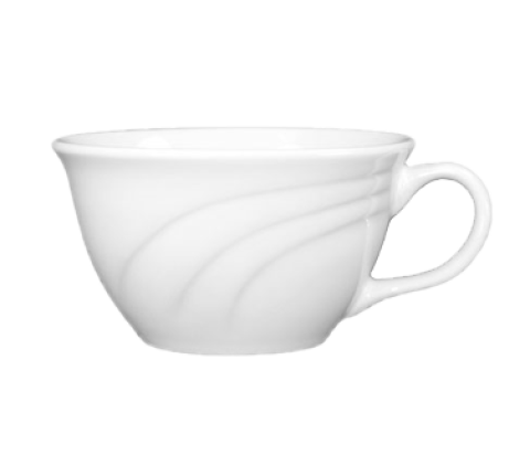 Tea Cup, low, 6 oz., 3-5/8" dia. x 2-1/8" H, round, with handle, rolled edge, fully vitrified, microwave & dishwasher safe, lead free, embossed, porcelain, Bright White, Amsterdamâ„¢