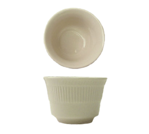 Bouillon, 7 oz., 3-5/8" dia. x 2-1/2"H, without handle, round, embossed, lined edge, microwave & dishwasher safe, lead free, ceramic, American White, Athena™