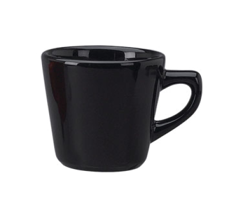 Cup, tall, 7 oz., 3-1/4" dia. x 3"H, round, with handle, rolled edge, microwave & dishwasher safe, lead free, ceramic, black, Cancun™