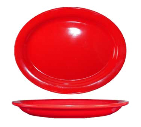 Platter, 10-3/8" x 7-1/4", oval, rolled edge, microwave & dishwasher safe, lead free, ceramic, crimson red, Cancun™