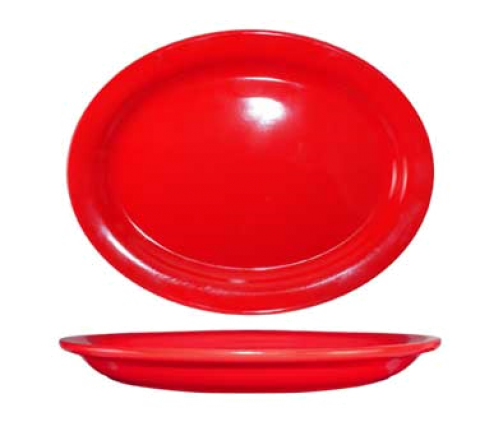 Platter, 12-1/2" x 9", oval, rolled edge, microwave & dishwasher safe, lead free, ceramic, crimson red, Cancun™