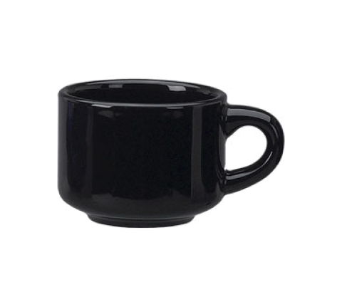 Cup, 7 oz., 3-1/4" dia. x 2-1/2"H, round, stackable, rolled edge, microwave & dishwasher safe, lead free, ceramic, black, Cancun™