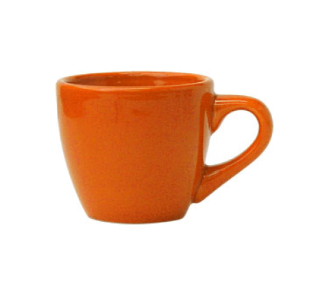 A.D. Cup, 3-1/2 oz., 2-5/8" dia. x 2-1/4" H, round, with handle, rolled edge, microwave & dishwasher safe, lead free, ceramic, orange, Cancun™