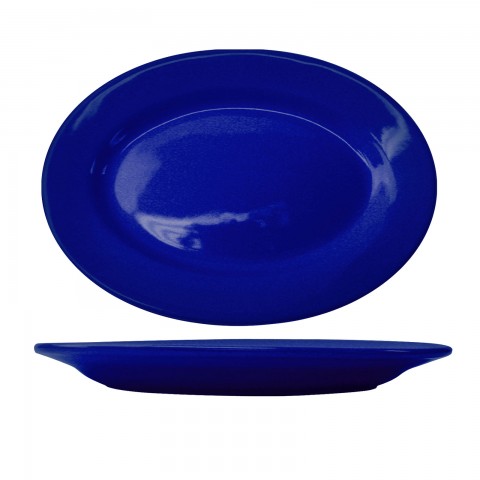 Platter, 15-1/2" x 10-1/2", oval, rolled edge, microwave & dishwasher safe, lead free, ceramic, cobalt blue, Cancun™