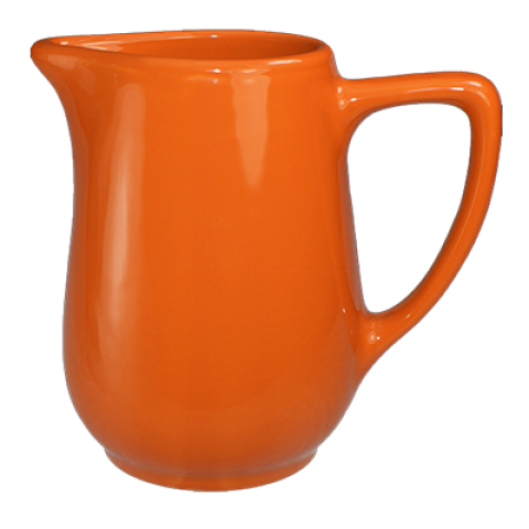Creamer, 13 oz., 5" dia. x 4-1/2"H, round, with handle, rolled edge, microwave & dishwasher safe, lead free, ceramic, orange, Cancun™