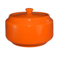 Sugar Bowl, 13 oz., 4-1/2" dia. x 3-3/8" H with lid, round, rolled edge, microwave & dishwasher safe, lead free, ceramic, orange, Cancun™