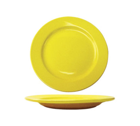 Plate, 9-3/4" dia., round, wide rim, rolled edge, microwave & dishwasher safe, lead free, ceramic, yellow, Cancun™
