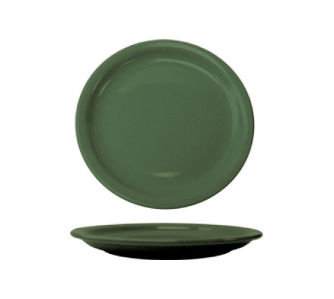 Plate, 10-1/2" dia., round, narrow rim, rolled edge, microwave & dishwasher safe, lead free, ceramic, green, Cancun™