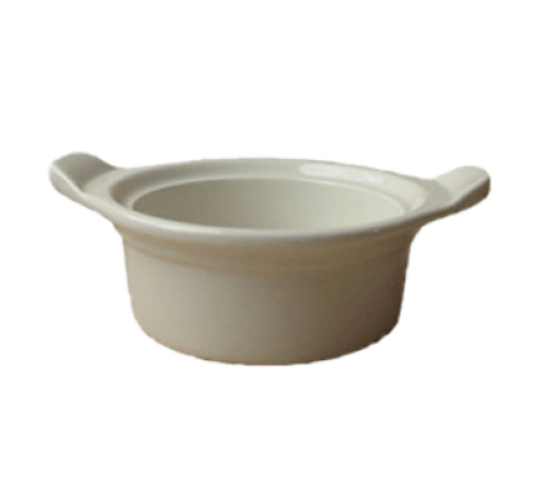 Casserole Dish, 9 oz., 5" dia. x 2-1/8"H, round, 6-1/2"L with handles, fully vitrified, oven/microwave/dishwasher safe, oven safe to 450°F, lead free, stoneware-ceramic, American White