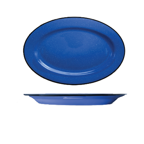 Platter, 11-1/2" x 8-1/4" , oval, rolled edge, fully vitrified, microwave & dishwasher safe, stoneware-ceramic, speckle ocean blue, Campfire™ (Patent No. D803003/D867072)