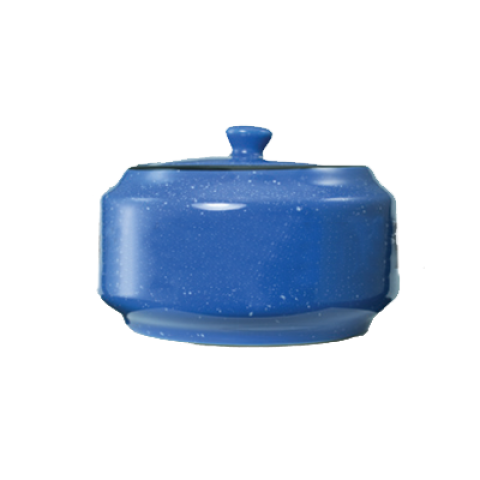 Sugar Bowl, 13 oz., 4-1/2" dia. x 3-3/8"H (with lid) 2-5/8"H (without lid), round, fully vitrified, microwave & dishwasher safe, stoneware-ceramic, speckle ocean blue, Campfire™