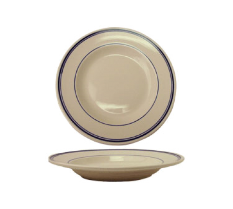 Pasta Bowl, 18 oz., 12" dia. x 1-3/4" H, round, rolled edge, microwave & dishwasher safe, lead free, ceramic, American White with blue band, Catania™